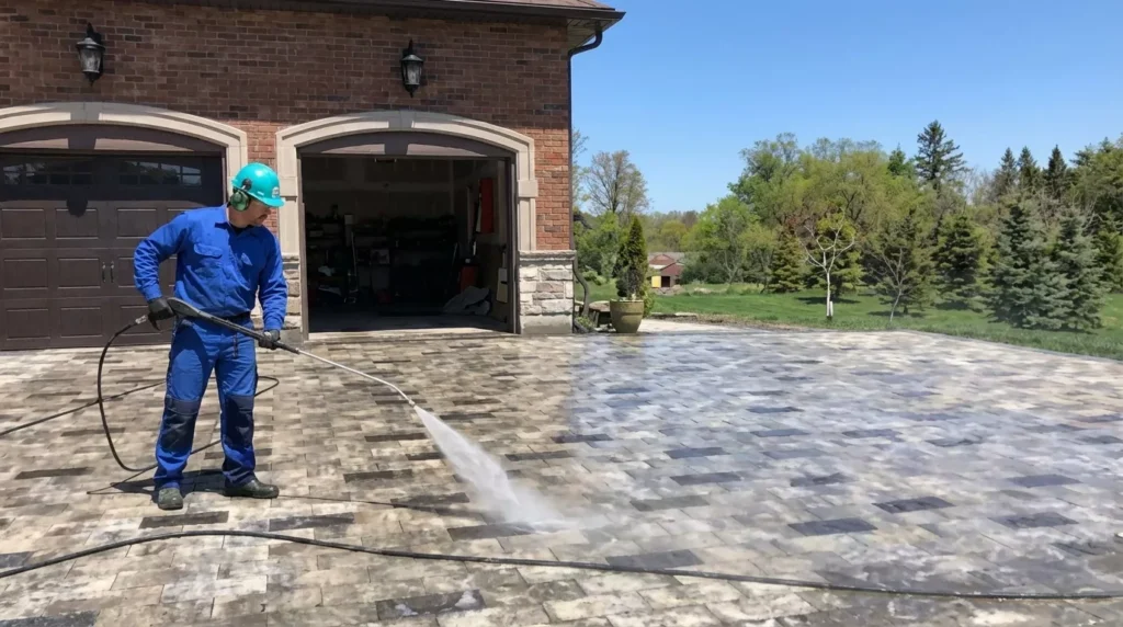 Pressure washing isn't "one size fits all." Using high pressure on older concrete can etch the surface permanently, leaving unsightly lines. For interlock driveways, aggressive washing blows out the joint sand, leading to shifting stones and weed growth. Our Driveway & Patio Washing assessment determines the correct PSI (pressure) and nozzle type for your specific material and identifies if re-sanding (polymeric sand) is required after cleaning to stabilize the pavers.