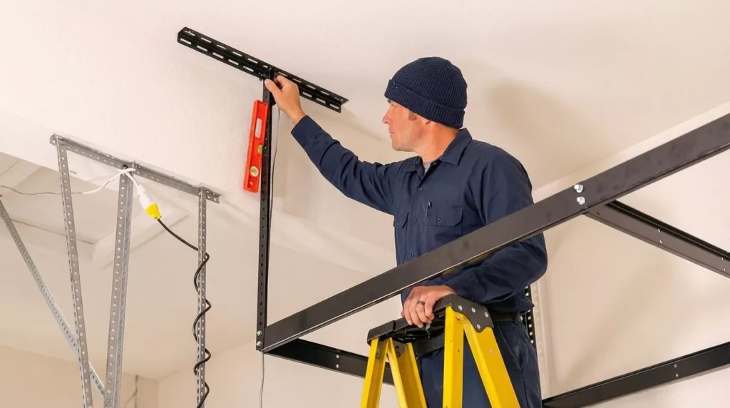 Hanging hundreds of pounds over your car (or your head) requires absolute structural certainty. You cannot simply screw these racks into drywall or thin furring strips. Our Overhead Storage Installation assessment uses stud finders to locate the exact center of your ceiling joists and determines the direction of the span to ensure we use the correct lag bolts and brackets for maximum weight capacity (often up to 600 lbs).