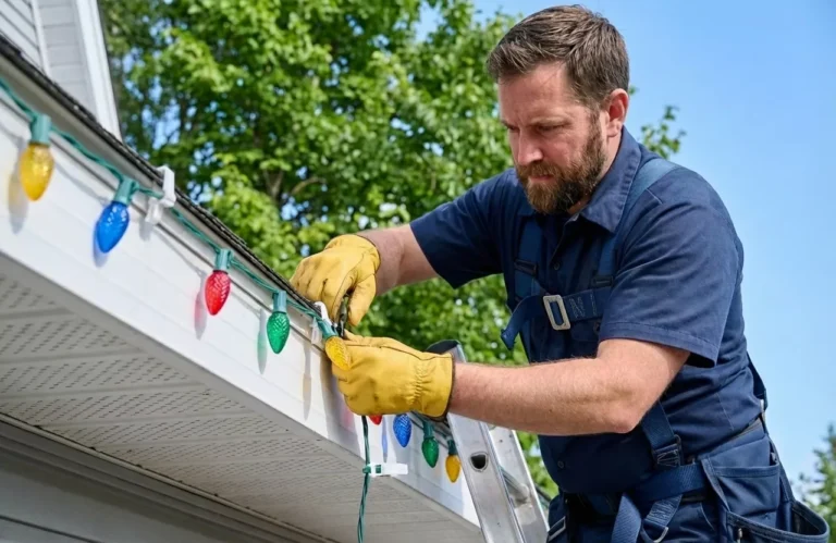 Professional roofline and eaves lighting installation in {city}. We install holiday and architectural lighting safely, securely and looking exactly as intended. Book online and our team will reach out to schedule.